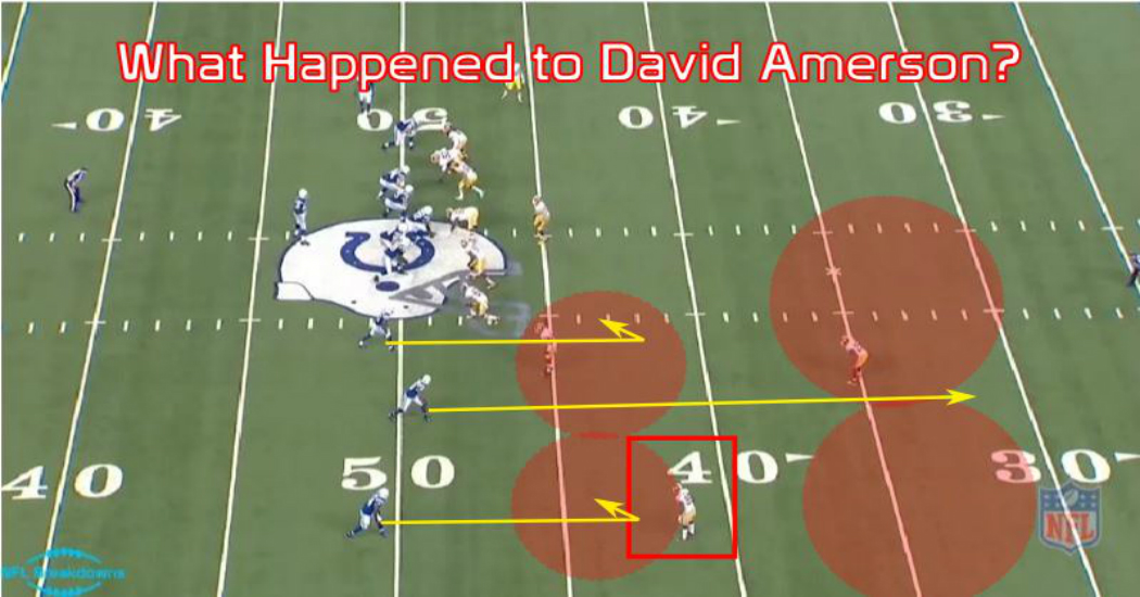 As the season progressed, Amerson showed flashes of potential. In this play Amerson plays bump-and-run coverage on Keenan Allen and is able to cut off his route and intercept the pass. Amerson CB#39 is on the bottom of your screen in this GIF.