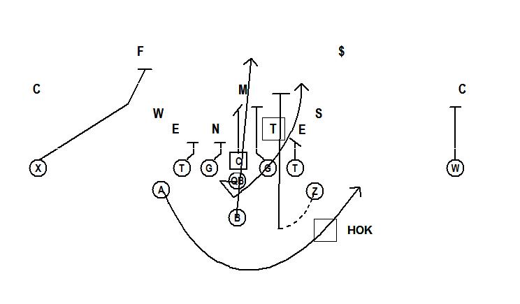 This concludes the discussion on the midline option play. Again, this is the play for the offense that attacks the A-gap, and is probably the most commonly ran play in this offense. The next article will go over what is probably the most simply play in the offense, the zone dive.