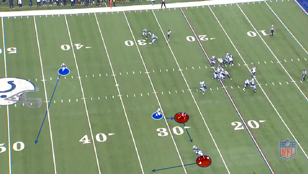 Savage makes a good drop back and throw on this play. He aims for the sideline to keep the ball away from the corner so that Hopkins can make the catch, but he just misses his target and it sails wide.